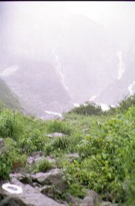 テントにもどるとやはりびしょぬれ、さらに振り替えると昨日なかったのに数本の滝が見えました。驚きました。